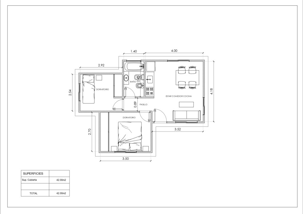 Características- 42 m² cubiertos
