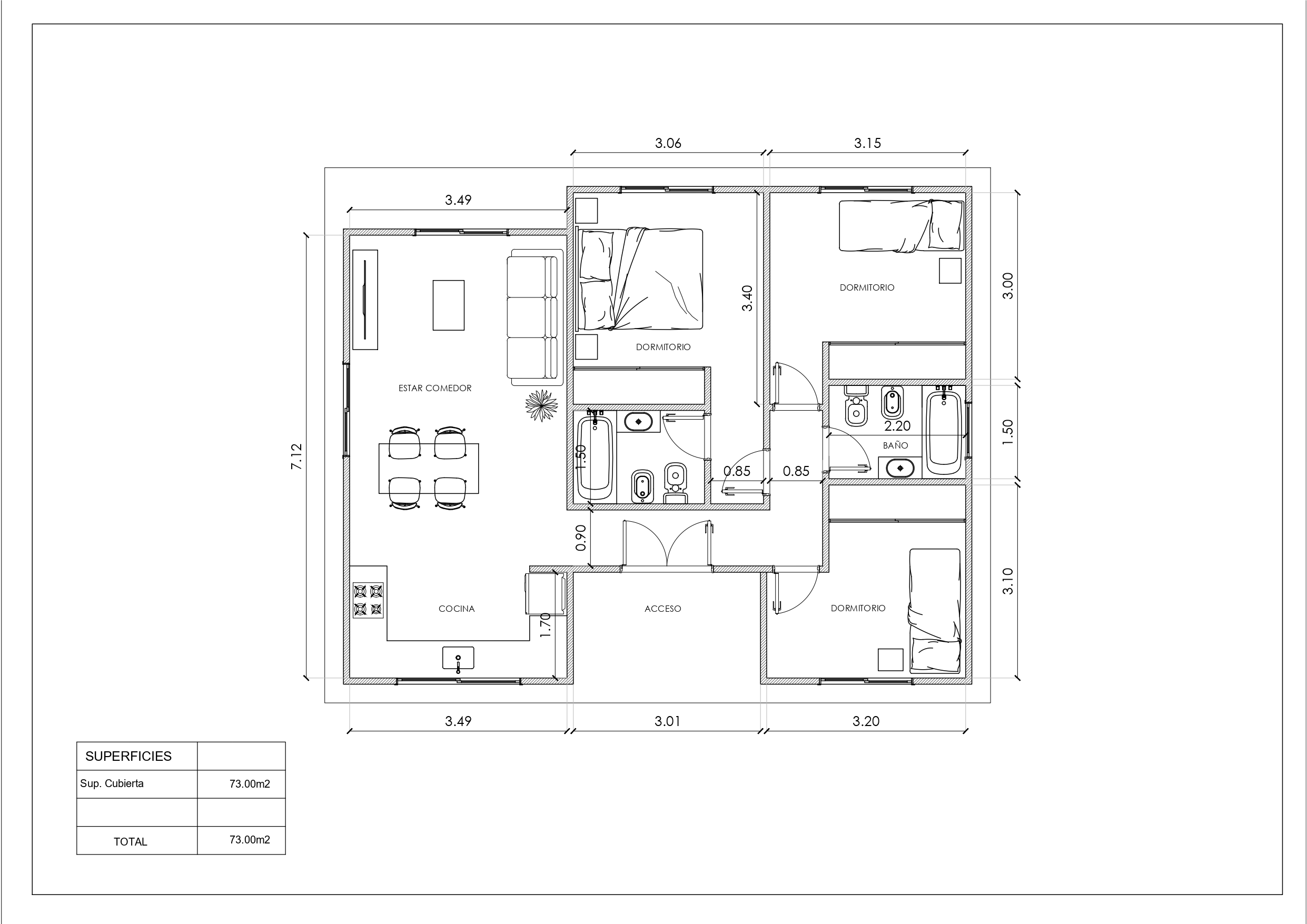 Características- 73 m² cubiertos